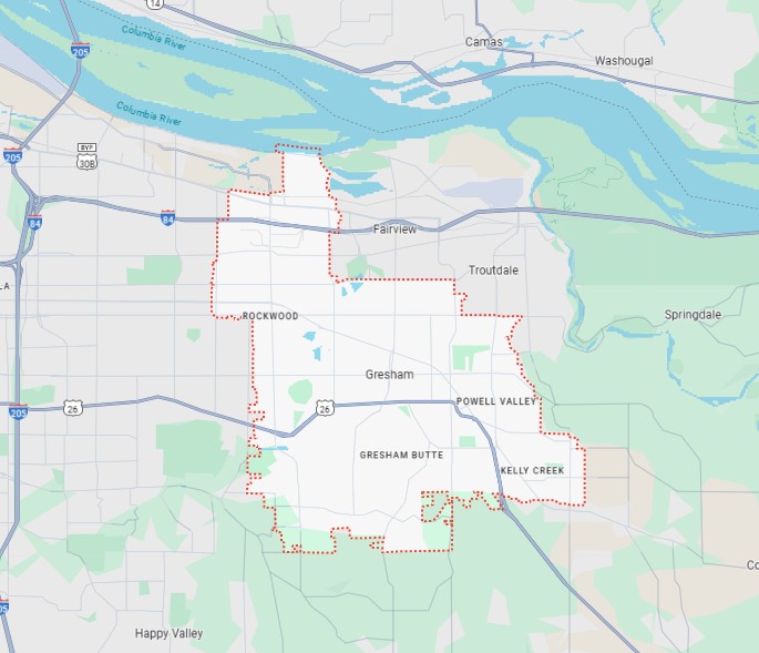 Coverage across Gresham—including Downtown Gresham, Rockwood, Powell Valley, Hollybrook, Gresham Butte, Kelly Creek, North Gresham, Wilkes East, and Centennial—plus surrounding communities such as Troutdale, Fairview, Wood Village, East Portland corridors, and more.